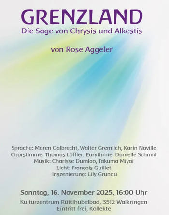 Die Eurythmie erschafft und belebt die Räume des Grenzlandes und bringt Kräftewirkungen ins Bild, die für Alkestis und Chrysis lebensbestimmend waren. Durch die Musik eröffnen sich zwischen lichten und dunklen Klängen Seelenräume. In Sprache und Schauspiel begegnen wir Alkestis und