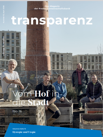 Erfahren Sie in unserem Bankmagazin «transparenz», was mit Ihrem Geld ermöglicht wird. Wir berichten über unsere Kreditprojekte, damit Sie sehen, wie Ihr Geld wirkt. So wird die Freie Gemeinschaftsbank für Sie «transparent», nämlich durchscheinend.