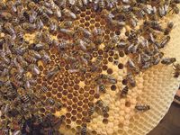 Jedes Mal, wenn ich in meinen Völkern eine Wabe ziehe, bin ich von der Schönheit und der Harmonie, die die Bienen ausstrahlen, bezaubert. Emsig und ohne Zeichen von Stress gehen sie ihren vielfältigen Aufgaben nach. In ihrer Biografie putzen die Jüngsten die Zellen nach dem Schlüpfen ihrer Schwestern; andere füttern die weissen Larven im Brutnest, andere sind mit dem Wabenbau beschäftigt und helfen später, den leicht verderblichen Nektar in Honig umzuwandeln, ein Produkt der Ewigkeit. Honig aus Pharaonengräbern ist auch heute noch geniessbar! Gegen das Ende der ersten 21 Lebenstage werden die Bienen zu Wächterinnen am Flugloch, bevor sie bis zum Lebensende Pollen und Nektar sammeln. Anders als in Werkstätten oder Büros gibt es im Bienenvolk keine Kontrollen, jede Biene arbeitet im Vertrauen, dass alle im Dienst für das Ganze ihr Bestes geben. Und in jedem Augenblick teilen sie vorbehaltlos alle vorhandenen Vorräte. Es ist bestürzend und ergreifend zu beobachten, dass bei akutem Futtermangel die Tiere im Volk kollektiv sterben.