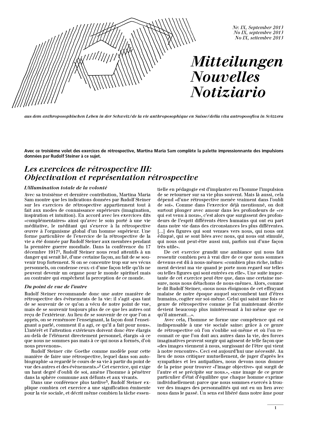 Eine deutsch- und eine französischsprachige Redaktion machen darin das Leben der Landesgesellschaft sichtbar: die Arbeit des Vorstands, der Zweige, der Delegiertenkonferenzen und weiterer Organe. Die Namen der verstorbenen Mitglieder werden regelmässig publiziert. Die Geisteswissenschaft Rudolf Steiners zwischen innerer Schulung und Arbeitsfeld und Lebensrealität findet darin ihren Niederschlag.