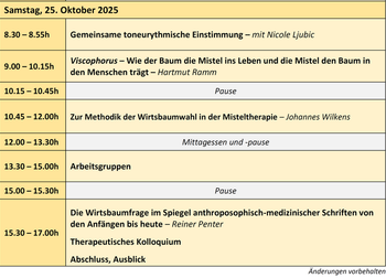Diese und weitere Fragen zum Verhältnis zwischen der Mistel und “ihrem” Baum sowie dessen Bedeutung für die Misteltherapie stehen im Zentrum des diesjährigen Studientags Mistel und Krebs. Wir gehen dabei von den einschlägigen Beschreibungen Rudolf Steiners in seinen medizinischen Vorträgen aus (insbesondere 3.9.1923 und 29.8.1924 in London, GA 319) und spannen den Bogen bis zu konkreten Fragen der Wirtsbaumwahl in der onkologischen Praxis.
